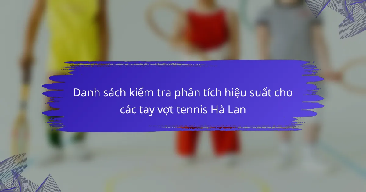 Danh sách kiểm tra phân tích hiệu suất cho các tay vợt quần vợt Hà Lan bao gồm một loạt các chỉ số quan trọng, bao gồm tỷ lệ thắng trong trận đấu, độ chính xác của cú giao bóng và mức độ thể lực. Bằng cách đánh giá cả kỹ năng kỹ thuật và các yếu tố tâm lý, danh sách này nhằm cung cấp cái nhìn toàn diện về khả năng và các lĩnh vực cần phát triển của một tay vợt, từ đó nâng cao hiệu suất của họ trên sân đấu.