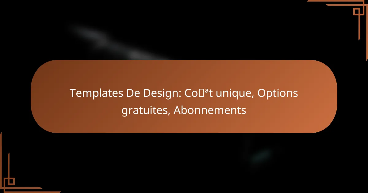 Les frais d’achat uniques pour les templates de design incluent le coût initial d’acquisition, qui peut être un paiement unique. Ce modèle est souvent préféré par les utilisateurs qui souhaitent éviter des engagements à long terme. Il est essentiel de comparer les options disponibles pour s’assurer d’obtenir un bon rapport qualité-prix.